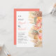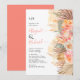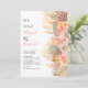Tropische Blume mit Wasserfarbe, Blätter aus Palmen und Pampas-Gras-Korallenhochzeit. Diese Hochzeitseinladung zeigt eine wunderschöne Kombination aus tropischen, wasserfarbenen Blume, Palmen-Blätter und Pampas-Gras. Die Anordnung der Blätter aus getrockneten Palmen, Protea und Rose, sowie die Pampasgras schmücken elegant die rechte Seite der Einladung. Auf der Rückseite, ein schöner Korallenpfirsichboden, fügt eine Touch von Wärme und Charme hinzu.