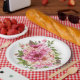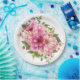 Diese Papierplatte ist in weißer Farbe mit einem schönen Blumendruck dargestellt. Passen Sie dieses Objekt an oder kaufen Sie, wie es ist. Stock Print freepik.com
