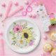 Diese Papierplatte ist in weißer Farbe mit einem schönen Blumendruck dargestellt. Passen Sie dieses Objekt an oder kaufen Sie, wie es ist. Stock Print freepik.com