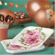 Diese Papierplatte ist in einer hellen Elfenbeinfarbe mit einem schönen Blumendruck dargestellt. Passen Sie dieses Objekt an oder kaufen Sie, wie es ist. Stock Print freepik.com