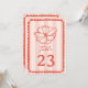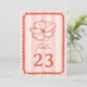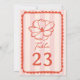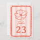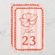 Rote Linie Kunst Blumenbild über rosa Streifen Hintergrund mit rotem Text und handgezeichneter Rahmen.