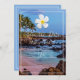 Ein romantisches Blumendesign mit weißer hawaiianischer Plumeria-Blume auf einem wunderschönen tropischen Strandgelände. Ein einfaches modernes Design mit symbolischer Blume, Schriftzeichen und weißer Kontur. Die Rückseite hat alle Einzelheiten der Hochzeit, personalisieren Sie die Details Ihres besonderen Tages. Ein Set für die Hochzeit am Strand, die Hochzeit von Hawaii, die Hochzeit in Urlaubsort der tropischen Insel und vieles mehr. Die hawaiianische Bedeutung für die Blume Plumeria ist "Neuanfang" und "Positivität". Beide sind perfekt für den neuen Anfang einer verheirateten Beziehung.