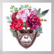 Dieses Design zeigt ein niedliches Portrait eines Affen, der in bunten Blume geschmückt ist.