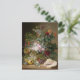 Vintage Blume auf dunklem Hintergrund. Diese hübsche antike Kunst umfasst Obst am Boden und eine hübsche Muschel. Kunstbild aus dem 17. Jahrhundert von Abraham Brugel.