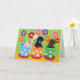 Blume Pot Labrador Welpen Card für Labrador Fans. Drei Welpen sitzen in den farbenfrohen Blume mit orangefarbenen, rosa und roten Blume. Schwarze Labrador, Gelbes Labrador, Schokolade Labrador Welpen sind alle auf dem Bild gemalt. Whimsical Labrador Malerei von Naomi Ochiai aus Japan gemalt.