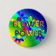 Eine grafische Blume Power Hippie Design von Künstler/Designer Charmaine Paulson auf einem Knopf.