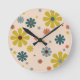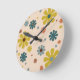 Blume Power Retro 60er Muster Mustard Blue Orange Runde Wanduhr