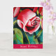 Ideal für eine Geburtstagskarte mit originellem Kunstdesign aus Aquarellmalerei von Sacha Grossel aus rosa englischer Rosenbude, direkt an der Blüte. Schöne, helle Farben kontrastierender Rosa, Grün und Gelb vermitteln ein Gefühl von ästhetischer Schönheit für botanische Kunstliebhaber überall.
