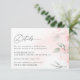 Vervollständigen Sie Ihre Hochzeitssaison mit dieser stilvollen Detailkarte. Die Einrichtung besteht aus rosafarbenen Blume und Grün auf einem hellrosa Hintergrund.