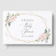 Fügen Sie Ihrer Babydusche mit diesen stilvollen und unvergesslichen Party eine persönliche Touch hinzu! Die Einrichtung besteht aus rot-rosa Blume, Grünpflanzen und goldfarbenem Rahmen auf weißem Hintergrund.