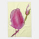 Von einer originalen Aquarellmalerei einer schönen und eleganten, blassrosa Magnolia-Blume in moderner flüssiger Blume. Dieses originelle Design ist einzigartig und vereint die Schönheit der Natur in diesem schönen rosa blühenden botanischen Stil. Es ist Set vor einem blassgelben Hintergrund.