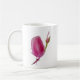 Von einer originalen Aquarellmalerei einer schönen und eleganten, blassrosa Magnolia-Blume in moderner flüssiger Blume. Dieses originelle Design ist einzigartig und vereint die Schönheit der Natur in diesem schönen rosa blühenden botanischen Stil. Es ist Set vor einem blassgelben Hintergrund.