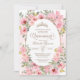 Quinceañera Einladung mit Blume in Rosa Blush und einem Mädchen in einem schönen passenden Kleid. Karo den Shop für diese Einladung mit Mädchen in verschiedenen Haarfarben und Hautfarben und mehr Variationen.