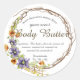 Rund Aquarellblumenschild mit Clematis, Tulpen, Forsythia, Blattwerk und dekorativen Zweigen. Geeignetes Etikett für den etsy Unternehmer, Aufkleber, der für Karosseriebutter, Peeling, Badebombe, Duftkerzen oder andere verwendet werden kann.