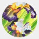 Schönes Originalgemälde von bunten lila, gelben und grünen Iris Blume. Wasserfarbene Kunst.
