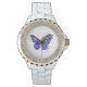 Schmuck, blau, Saphir, funkelnder Schmetterling aus Blume mit blauen, wertvollen Blume mit goldenen Blätter auf weißem Hintergrund.