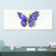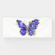 Schmuck, blau, Saphir, funkelnder Schmetterling aus Blume mit blauen, wertvollen Blume mit goldenen Blätter auf weißem Hintergrund.
