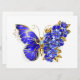 Schmuck, blau, Saphir, funkelnder Schmetterling aus Blume mit blauen, wertvollen Blume mit goldenen Blätter auf weißem Hintergrund.