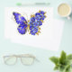 Schmuck, blau, Saphir, funkelnder Schmetterling aus Blume mit blauen, wertvollen Blume mit goldenen Blätter auf weißem Hintergrund.