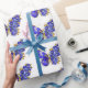 Schmuck, blau, Saphir, funkelnder Schmetterling aus Blume mit blauen, wertvollen Blume mit goldenen Blätter auf weißem Hintergrund.