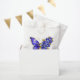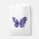 Schmuck, blau, Saphir, funkelnder Schmetterling aus Blume mit blauen, wertvollen Blume mit goldenen Blätter auf weißem Hintergrund.