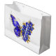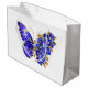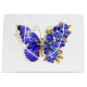 Schmuck, blau, Saphir, funkelnder Schmetterling aus Blume mit blauen, wertvollen Blume mit goldenen Blätter auf weißem Hintergrund.