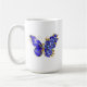 Schmuck, blau, Saphir, funkelnder Schmetterling aus Blume mit blauen, wertvollen Blume mit goldenen Blätter auf weißem Hintergrund.