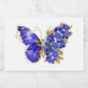 Schmuck, blau, Saphir, funkelnder Schmetterling aus Blume mit blauen, wertvollen Blume mit goldenen Blätter auf weißem Hintergrund.
