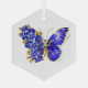 Schmuck, blau, Saphir, funkelnder Schmetterling aus Blume mit blauen, wertvollen Blume mit goldenen Blätter auf weißem Hintergrund.