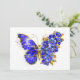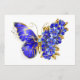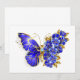 Schmuck, blau, Saphir, funkelnder Schmetterling aus Blume mit blauen, wertvollen Blume mit goldenen Blätter auf weißem Hintergrund.