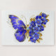 Schmuck, blau, Saphir, funkelnder Schmetterling aus Blume mit blauen, wertvollen Blume mit goldenen Blätter auf weißem Hintergrund.