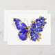 Schmuck, blau, Saphir, funkelnder Schmetterling aus Blume mit blauen, wertvollen Blume mit goldenen Blätter auf weißem Hintergrund.