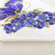 Schmuck, blau, Saphir, funkelnder Schmetterling aus Blume mit blauen, wertvollen Blume mit goldenen Blätter auf weißem Hintergrund.
