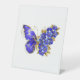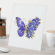 Schmuck, blau, Saphir, funkelnder Schmetterling aus Blume mit blauen, wertvollen Blume mit goldenen Blätter auf weißem Hintergrund.