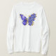 Schmuck, blau, Saphir, funkelnder Schmetterling aus Blume mit blauen, wertvollen Blume mit goldenen Blätter auf weißem Hintergrund.
