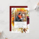 Die Save the Date Karte zeigt das Foto Ihres Ehepaares, das von großen Blume im Herbst und Herbstblättern umgeben ist. Die Anordnung der Herbstblumen enthält goldgelbe Sonnenblumen, dunkle rote Rosen und weiße Hydrangea-Blume. Tief grüne und olivgrüne Blätter vertiefen die Herbstpracht. Der moderne Boho Botanical ist in dieser Saison sehr beliebt. Der weiche Taubengrau-Text liefert die Details zur Hochzeit. Diese Save the Date Card ist Teil der Kollektion Sonnenblumen und Burgund. Es hat die Vorlagen, die Sie brauchen, um eine Save the Date Schreibtischsuite zu schaffen, die Ihre Gäste nicht vergessen werden!