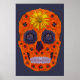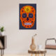 Mein Tag des Toten Schädels feiert Leben und Tod mit einer Collage von einigen Gemälden meiner Blume, die den Orangenmohn des Scharlachrots enthalten.