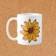 Magst du Tasse zum Thema Blume? Diese Tasse hat eine handgezeichnete gelbe Sonnenblume mit roten und orangefarbenen Spitzen.