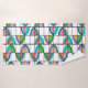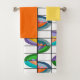 Dieses Set ist mit einem gelben Waschlappen, einem orangefarbenen Handtuch und einem Badetuch mit einem Boho-Design von Blume in Ovalen ausgestattet, die in vier Teile geteilt und in ein Gitter gelegt wurden.