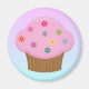 Dieser Magnet verfügt über einen rosa Kuchen mit vielen Blume Sprinklen auf einem rosa und blauen Farbverlauf Hintergrund. Suchen Sie nach mehr koordinierenden Blume Sprinkles Cupcake Artikel in unserer Galerie.