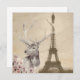 Vintages sepia-farbenes Foto des Eiffelturms mit wunderschönem Hirschüberwurf mit Blumengestein