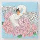 Ein weißer Schwan, umgeben von rosa Blume, in blauer Umgebung