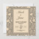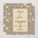 Es handelt sich um eine Hochzeitseinladung, die mit Blume- und Laubmustern gepflegt wurde. Es zeichnet sich durch eine moderne typografische Anordnung mit eleganten Schriftart aus. Die Rückseite bietet ein künstlerisches Element mit dem gesamten Musterdesign.