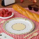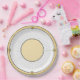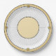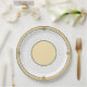 Das fröhliche, im Art-Déco-Stil inspirierte, originelle Digitalbild von Leslie Sigal Javorek schmückt diese Papiertafel mit einer stilisierten Blume von hellgrau, sonnengelb, sowie Akzenten von Kirschrot und aquamarin in schwarz umrissen, das Set vor einem Hintergrund von massiven goldenen Stäben, schwarz und weiß Streifen.
