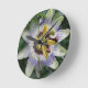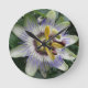 Diese phantastische Uhr zeigt ein hochdetailliertes Foto einer wunderschönen und exotischen Passionsblume. Das Foto wurde mit Makrofotografie aufgenommen, was zu einem so detaillierten Bild führte, dass man jedes einzelne Blatt sehen kann. Die Farben im Bild sind hell und lebendig.