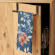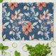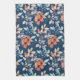 Dieses dekorative Küchentuch weist ein elegantes Blumenmuster auf einem marineblauen Hintergrund auf. Schöne Blume aus Kupfer, blaue Beeren und Blattwerk sind im Aquarellstil bedruckt.