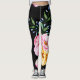 Coole, farbenfrohe Blume in Rosa und Gelb mit grünen Blättern auf kontrastierendem schwarzen Hintergrund.