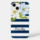Blume und blaue, weiße Streifen moderne Blumen Case-Mate iPhone Hülle