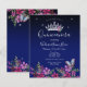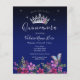 Schöne Imitate glänzen Sterne an der oberen Grenze. Elegantes und trendiges Design mit extravaganter Schrift-Typografie. Alle Texte sind individuell einstellbar und lassen sich für Ihr eigenes Party leicht ändern. Grosses elegantes Quinceañera Design. Erhältlich in verschiedenen Farben. Schöne Prinzessin Tiara mit Blume-Arrangement, blauer Schmetterling mit unten Blumenrand. Verschiedene Hintergrundfarben verfügbar.