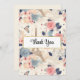 Vielen Dank Karte mit einem schönen französischen Motivmuster. Hübsche Blume, Eiffelturm und Schmetterlinge. Die Farben sind pink, blau, pfirsichfarben und creme.